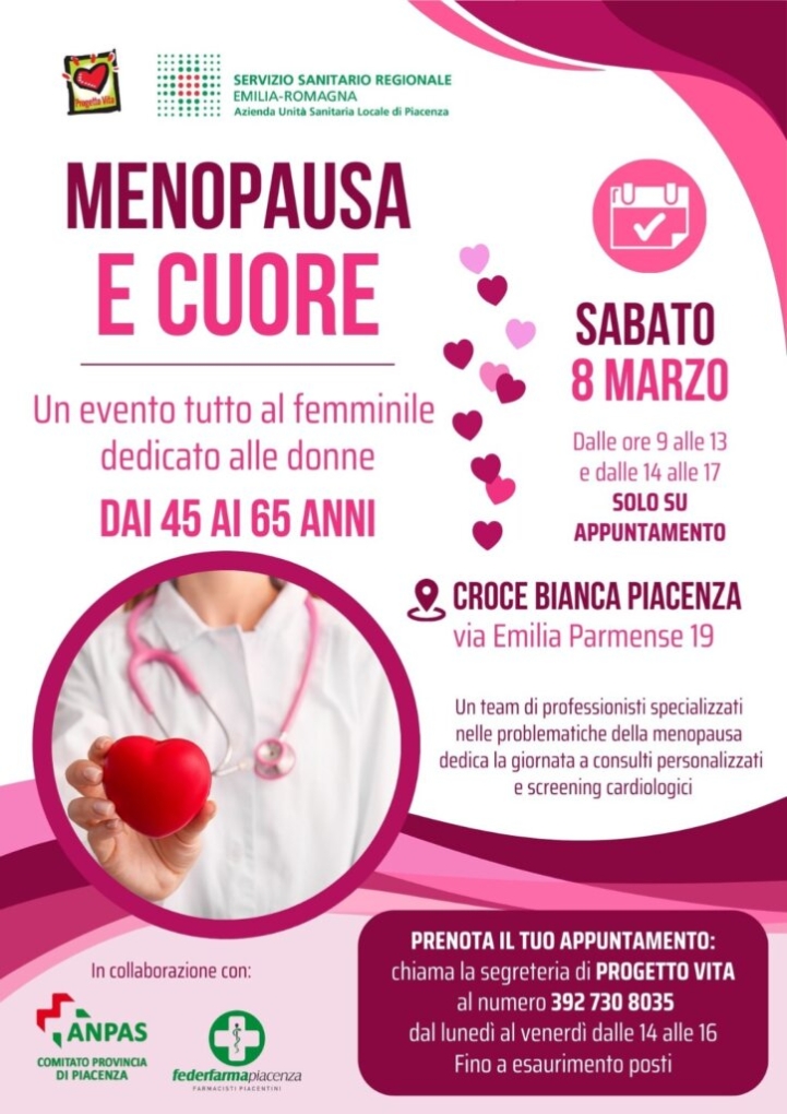 Carissime, Progetto Vita Piacenza vuole condividere con voi un importante evento in collaborazione con Usl piacenza, Anpas, Federfarma Piacenza e Progetto Vita.